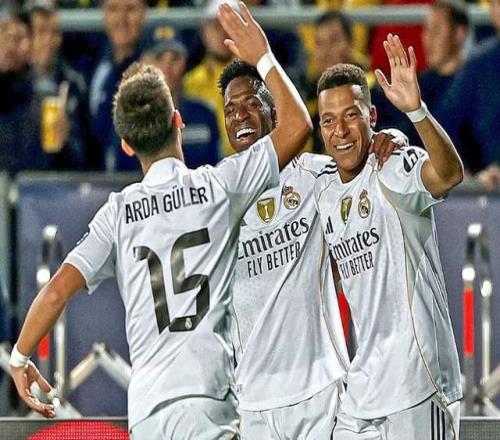这次FIFA比赛期,皇马的三巨头在各自国家队都表现出色。姆巴佩在法国vs阿塞拜疆的比赛中传射建功;维尼修斯在巴西5-0韩国的热身赛中1球1助;居勒尔在土耳其6-1狂胜保加利亚的世预赛中1球2助。
