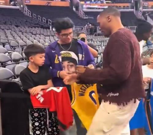 什么仇什么怨威少签名球衣时,故意漏掉湖人队的球衣!