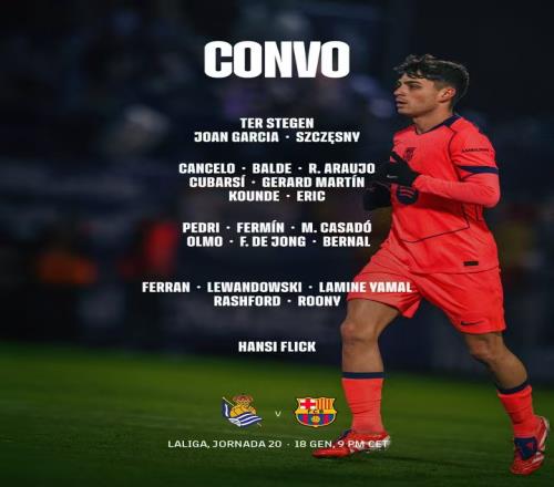 巴萨官方:拉菲因伤缺席战皇社西甲 01-18 18:10巴塞罗那俱乐部官方宣布,拉菲尼亚因右大腿受伤,出于谨慎考虑他将缺席周日晚作客皇家社会的比赛。 巴萨大名单 门将:特尔施特根、霍