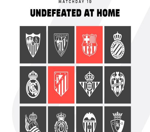 北京时间1月15日,据西甲联赛官方统计,巴萨与马竞是本赛季西甲联赛唯二主场保持不败的球队。
